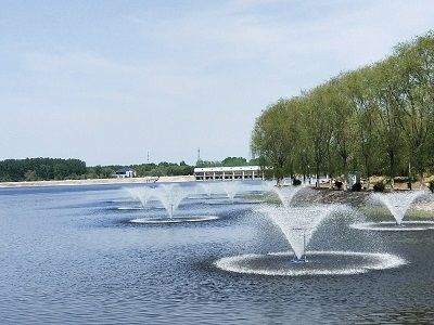 近日,沙河闸西侧湿地公园水域40台景观曝气喷泉调试完成正式启用,不但可以起到增强流动性提高曝气水平净化水质的作用,还为沙河闸增添了一道靓丽景观。
